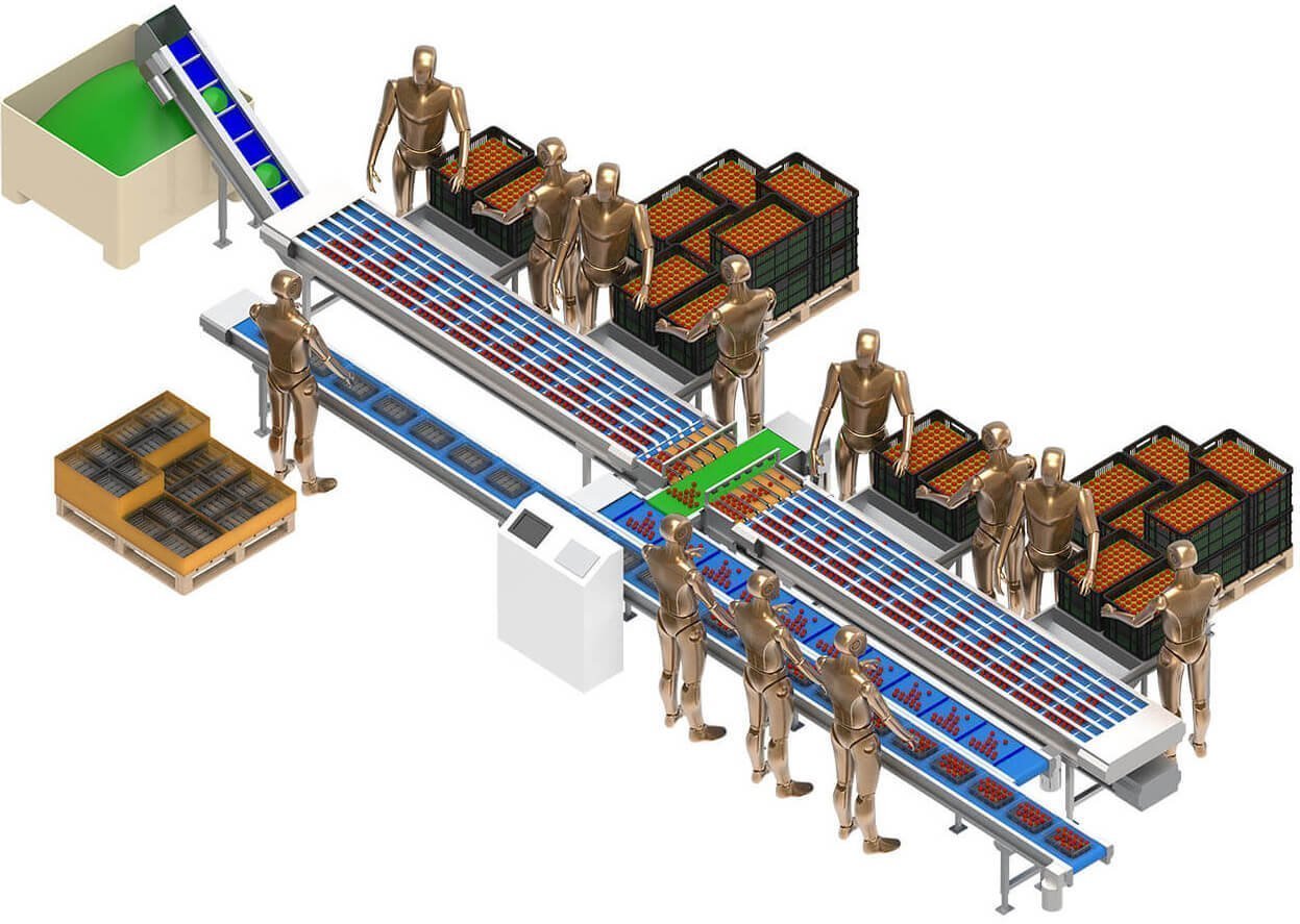 LINEA A 2 CANALI PER CALIBRATURA A DIMENSIONE DI ORTAGGI,